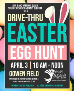 Military Youth in the Boise/ Caldwell area are invited to join in our Drive-In event Easter Egg Hunt! Registration below!